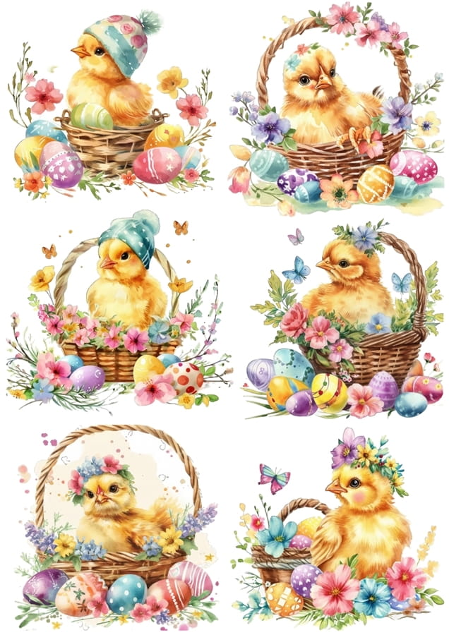 Papier klasyczny A4 do decoupage - Wielkanoc , kurczaki, pisanki, koszyki, kwiaty