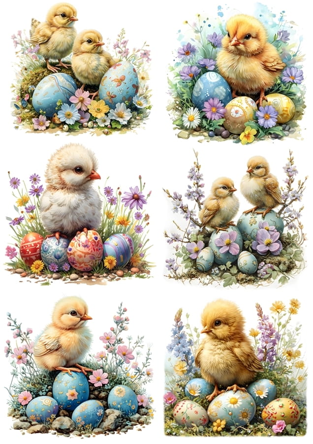 Papier klasyczny A4 do decoupage - Wielkanoc , kurczaki, pisanki, kwiaty
