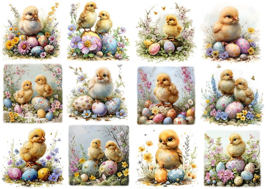 Papier klasyczny A4 do decoupage - Wielkanoc , kurczaki, pisanki, kwiaty