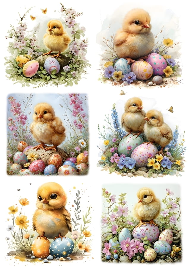 Papier klasyczny A4 do decoupage - Wielkanoc , kurczaki, pisanki, kwiaty