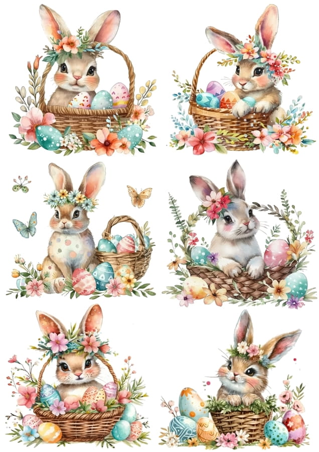 Papier klasyczny A4 do decoupage - Wielkanoc , zające, pisanki, koszyki, kwiaty