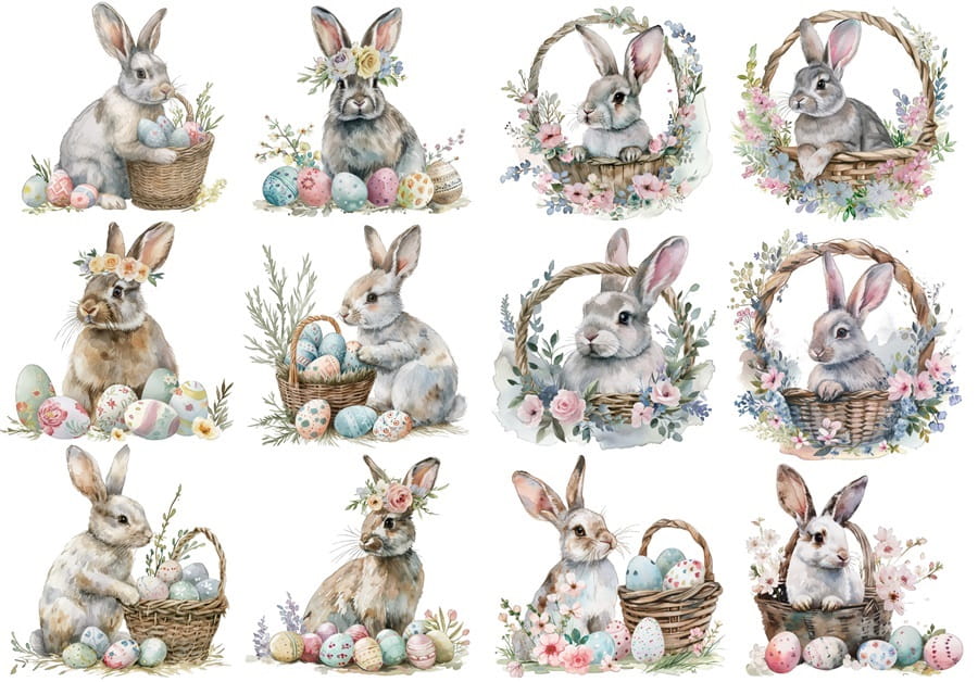Papier klasyczny A4 do decoupage - Wielkanoc , zające, pisanki, koszyki, kwiaty