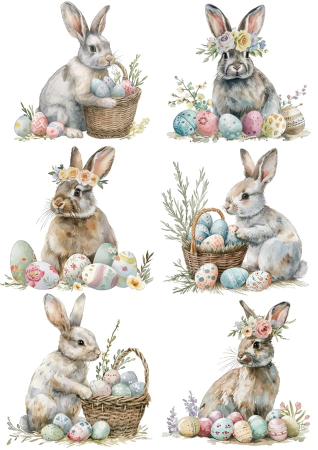 Papier klasyczny A4 do decoupage - Wielkanoc , zające, pisanki, koszyki, kwiaty