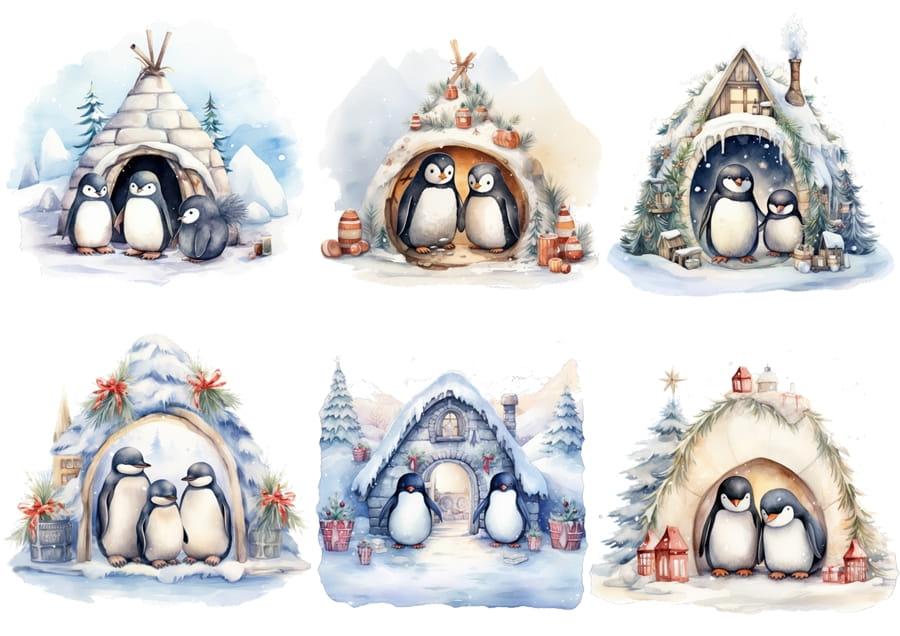 Papier klasyczny A4 do decoupage - pingwiny, ptaki, igloo, zima