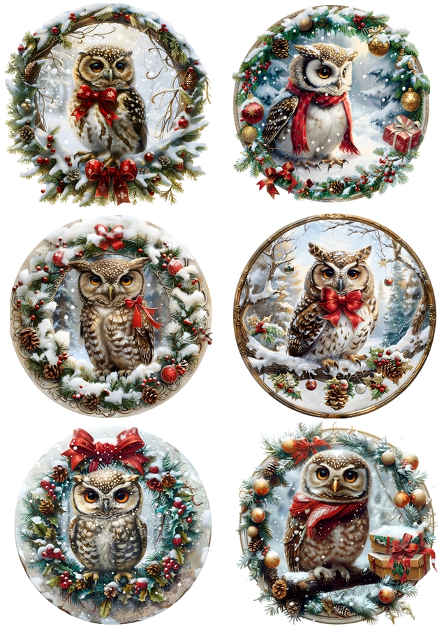 Papier klasyczny A4 do decoupage - sowy, sówki, ptaki, zima, wianki, święta
