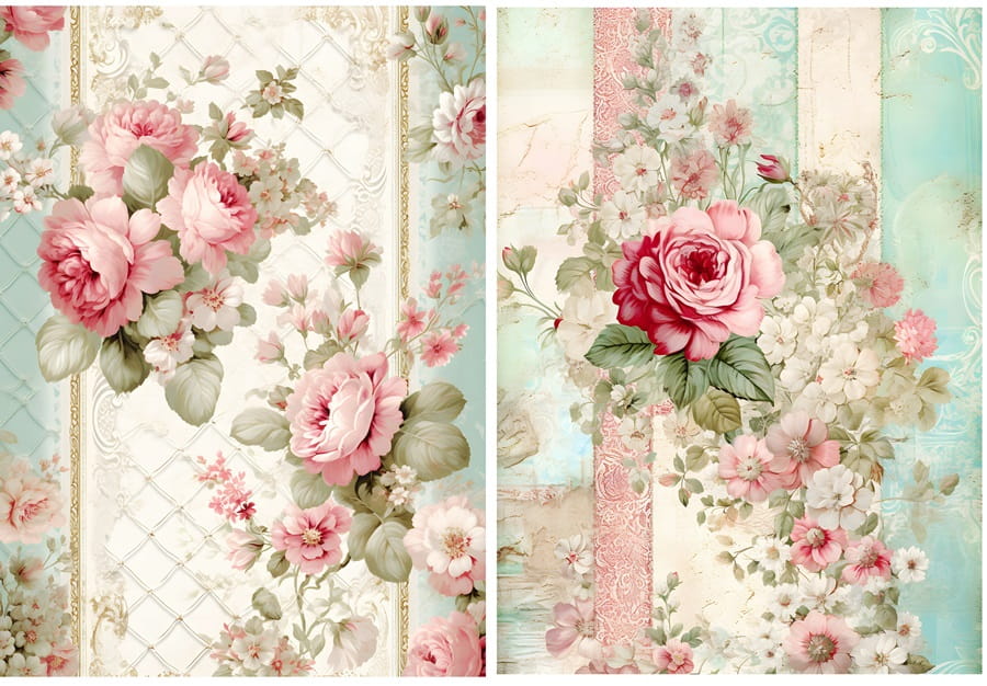 Papier ryżowy A4 Artando do decoupage - Kwiaty, rustykalne róże, Vintage, wzorki