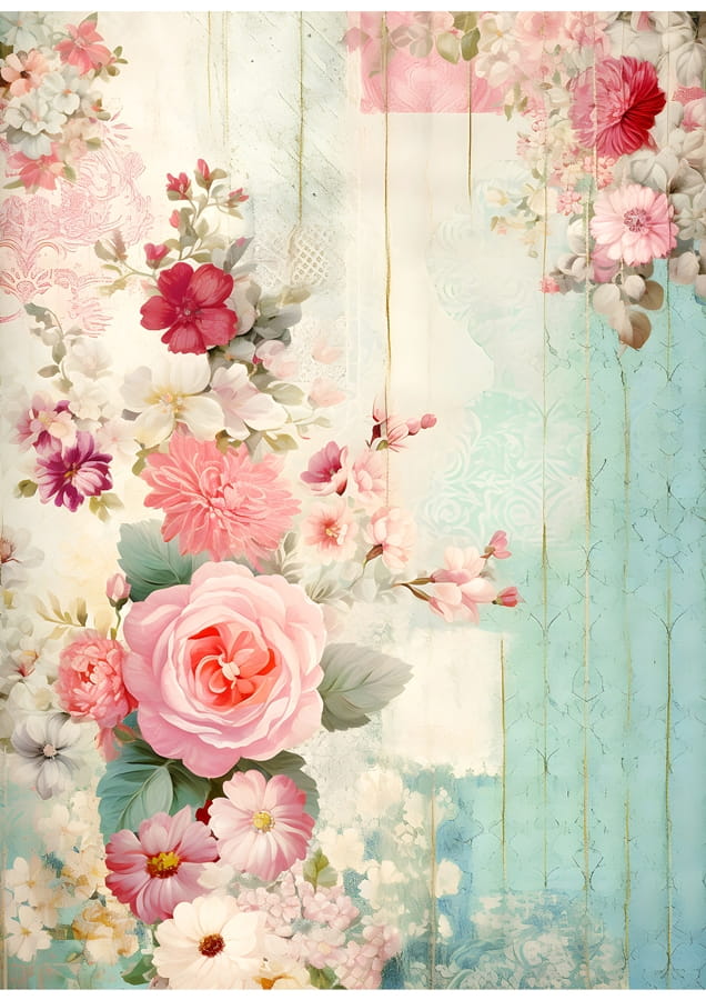 Papier ryżowy A4 Artando do decoupage - Kwiaty, rustykalne róże, Vintage, wzorki