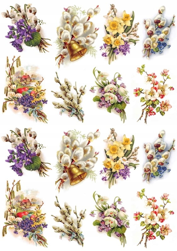 Papier ryżowy A4 Artando do decoupage - Wielkanoc, kwiaty, bazie, fiołki