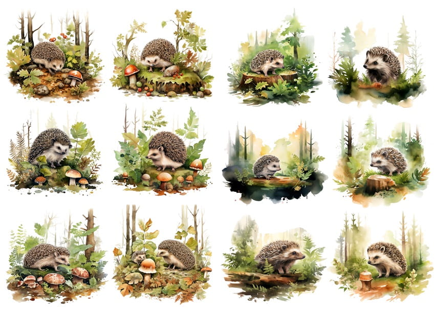 Papier ryżowy A4 Artando do decoupage - jeże, jeżyki, las, drzewa, grzyby