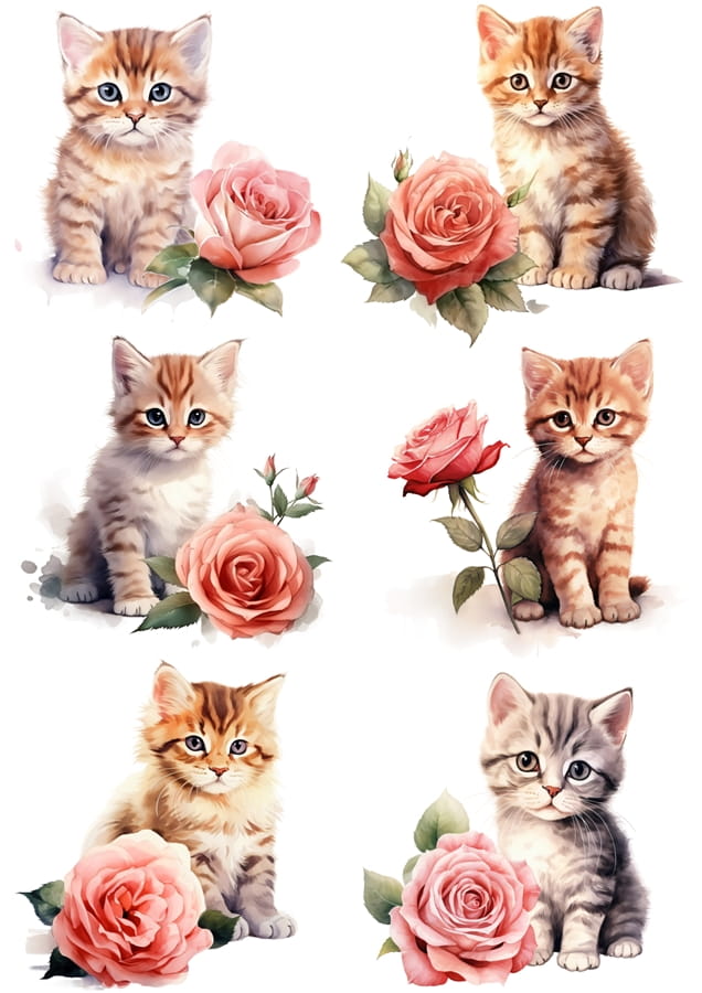 Papier ryżowy A4 Artando do decoupage - koty, kotki, kwiaty, róże