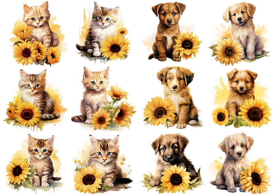 Papier ryżowy A4 Artando do decoupage - koty, psy, kwiaty, słoneczniki