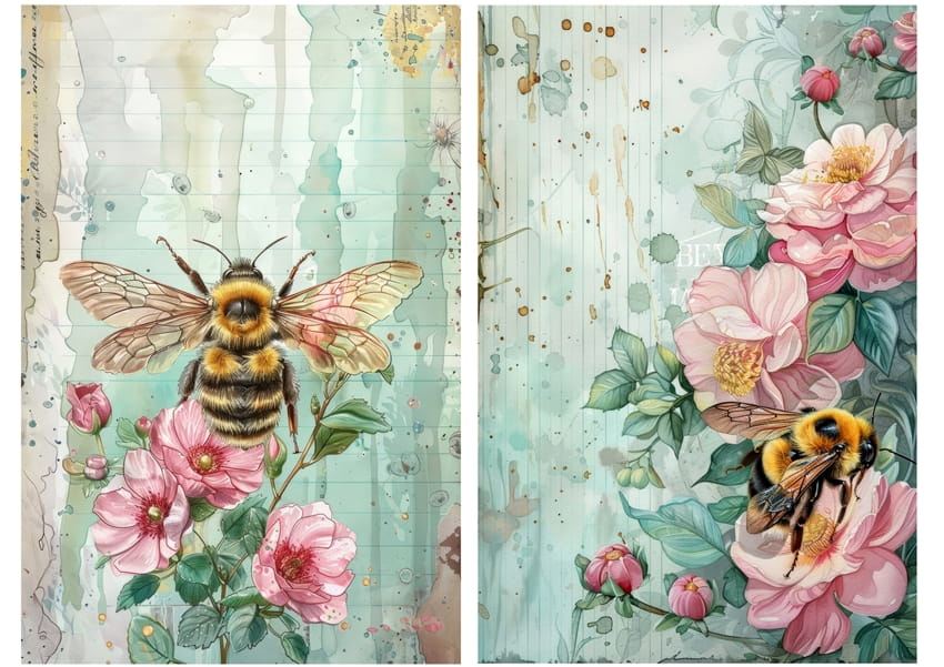 Papier ryżowy A4 Artando do decoupage - kwiaty, róże, pszczoły
