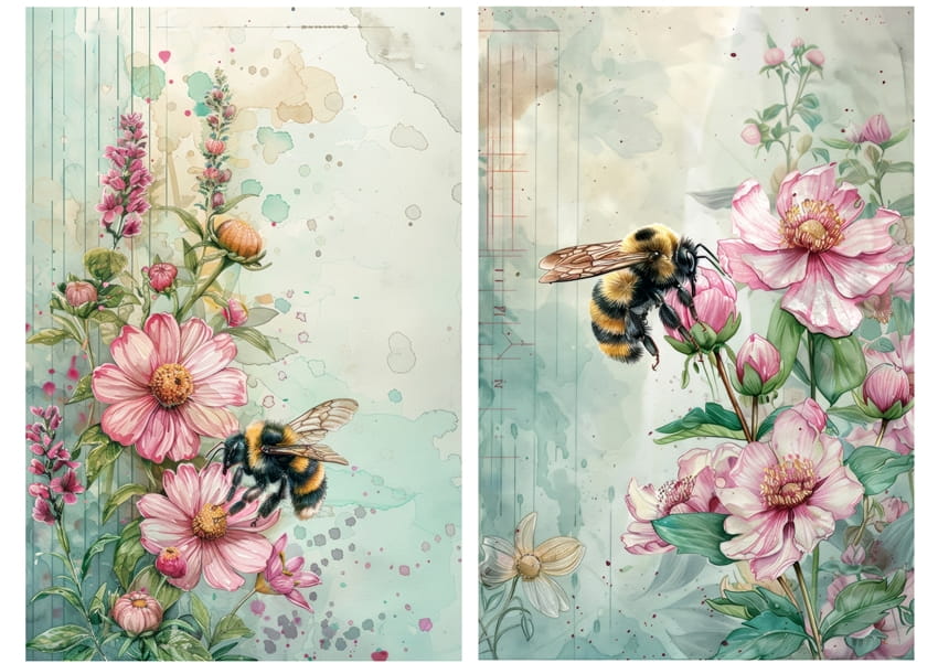 Papier ryżowy A4 Artando do decoupage - kwiaty, róże, pszczoły