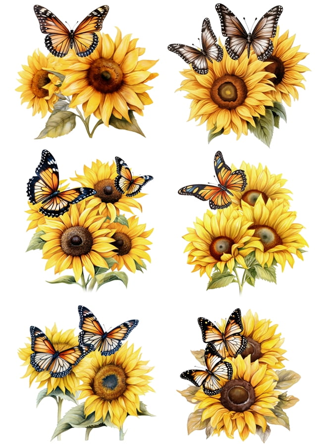 Papier ryżowy A4 Artando do decoupage - kwiaty, słoneczniki, motyle