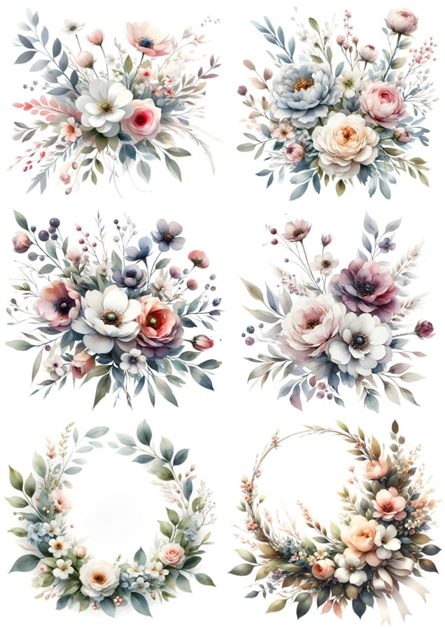 Papier ryżowy A4 Artando do decoupage - kwiaty, wianki
