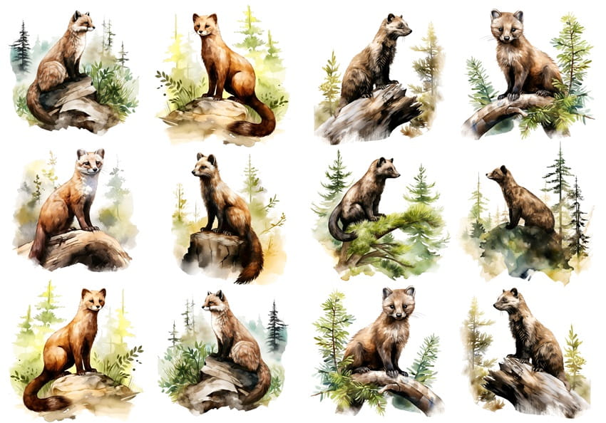 Papier ryżowy A4 Artando do decoupage - łasice, kuny, las, drzewa