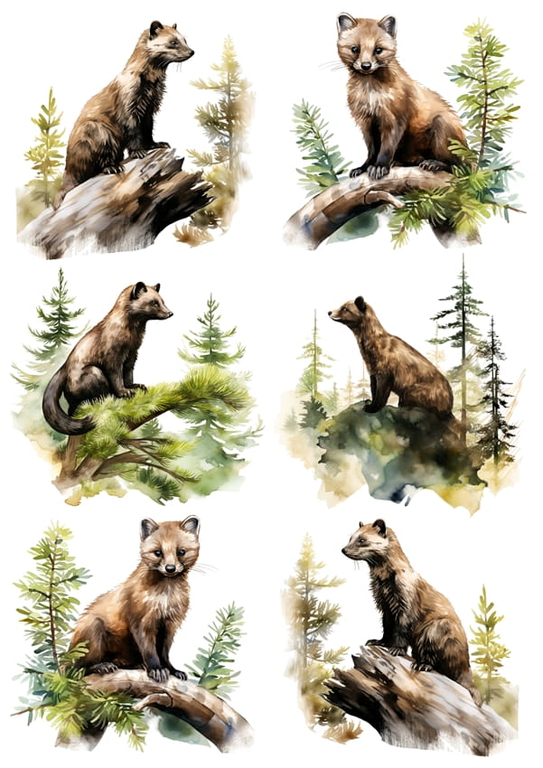 Papier ryżowy A4 Artando do decoupage - łasice, kuny, las, drzewa