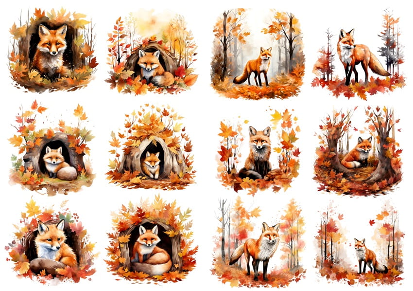 Papier ryżowy A4 Artando do decoupage - lisy, las, drzewa, nory, liście, jesień