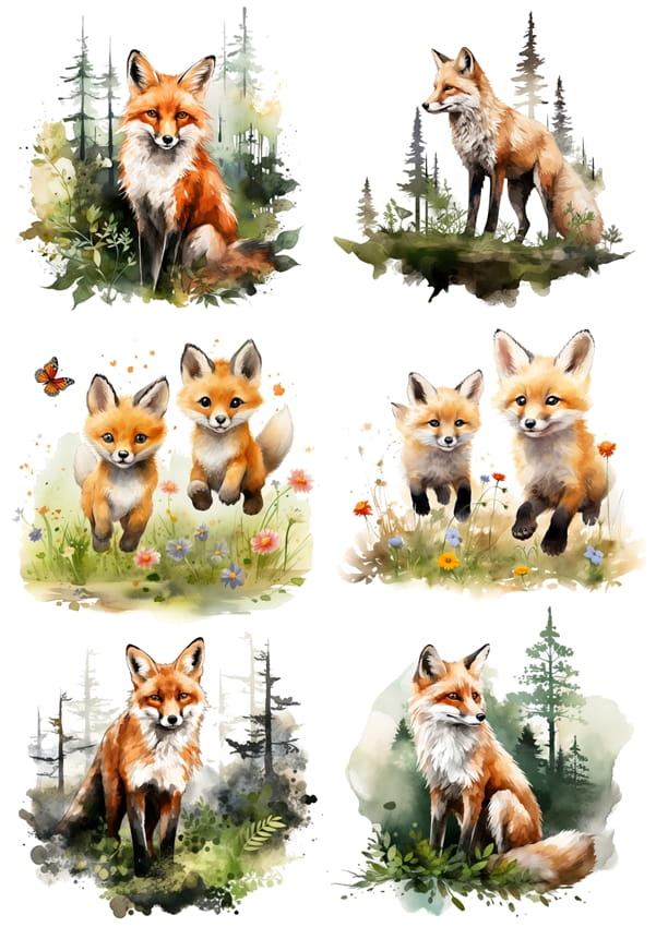 Papier ryżowy A4 Artando do decoupage - lisy, liski, las, drzewa, kwiaty, motyle
