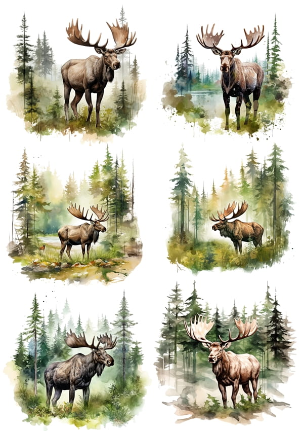 Papier ryżowy A4 Artando do decoupage - łosie, łoś, las, drzewa