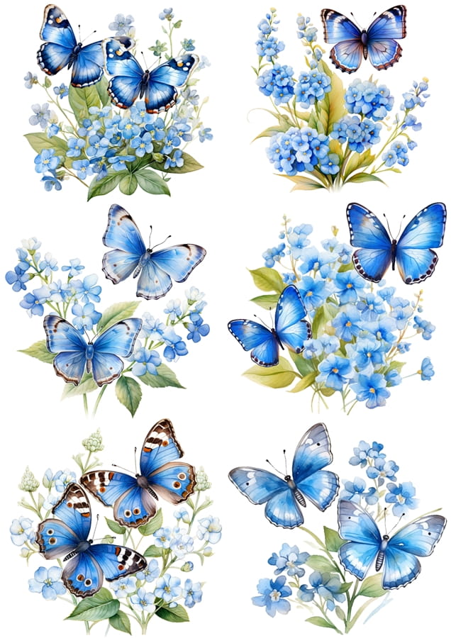 Papier ryżowy A4 Artando do decoupage - motyle, motylki, kwiaty, niezapominajki