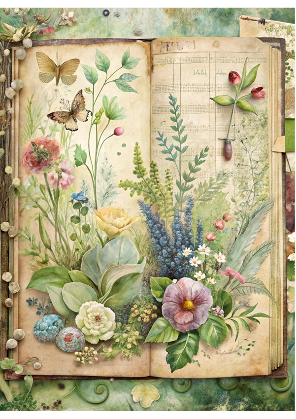 Papier ryżowy A4 Artando do decoupage - ogród, kwiaty, rośliny, napisy, Vintage