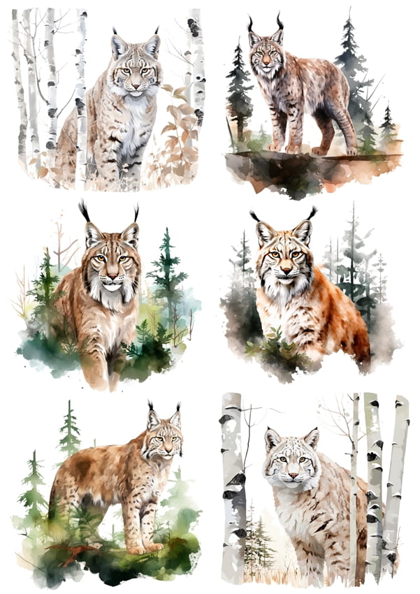 Papier ryżowy A4 Artando do decoupage - rysie, dzikie koty, las, drzewa