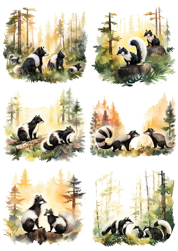 Papier ryżowy A4 Artando do decoupage - skunksy, las drzewa