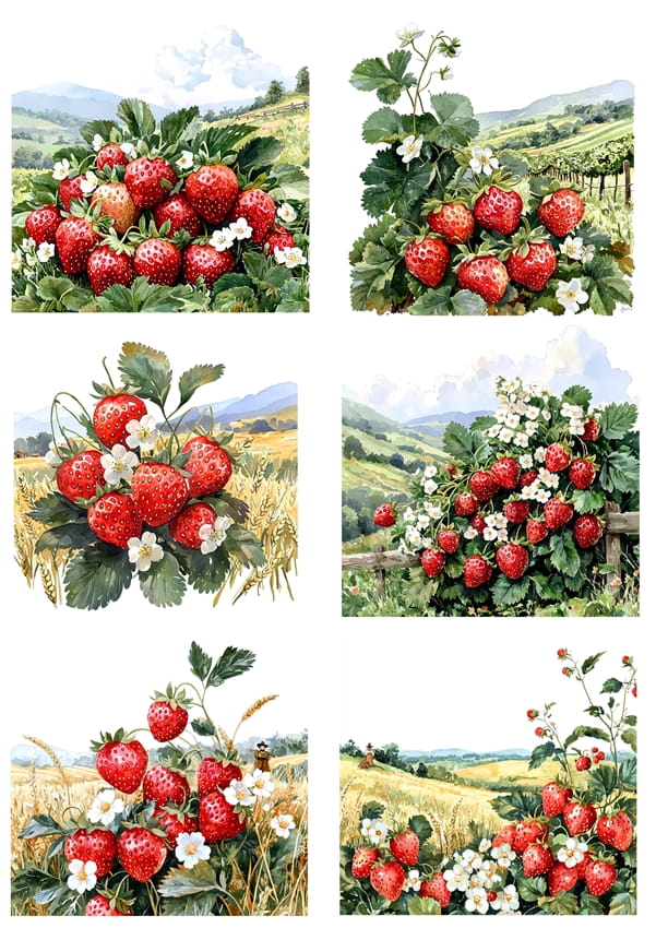 Papier ryżowy A4 Artando do decoupage - truskawki, owoce, kwiaty, widok
