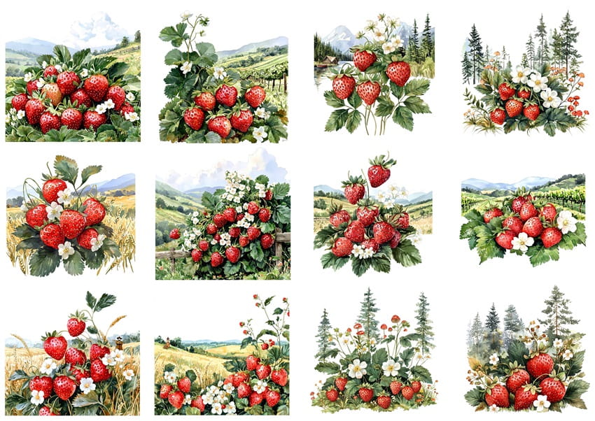 Papier ryżowy A4 Artando do decoupage - truskawki, owoce, kwiaty, widok