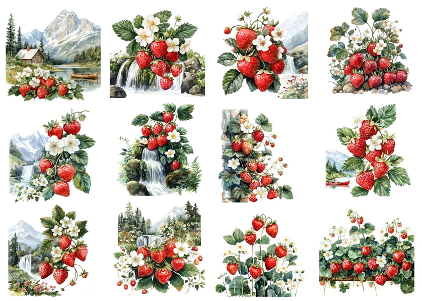 Papier ryżowy A4 Artando do decoupage - truskawki, owoce, kwiaty, widok