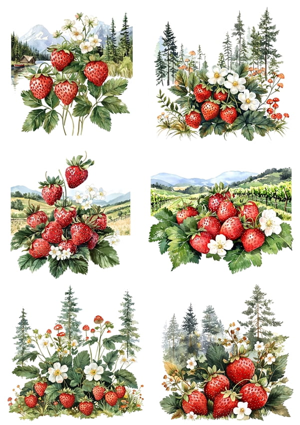Papier ryżowy A4 Artando do decoupage - truskawki, owoce, kwiaty, widok