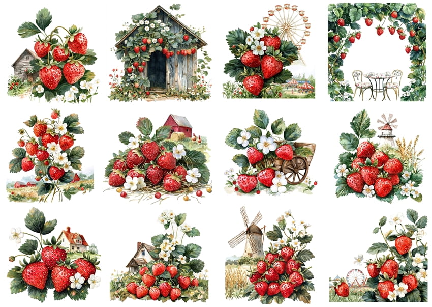 Papier ryżowy A4 Artando do decoupage - truskawki, owoce, kwiaty