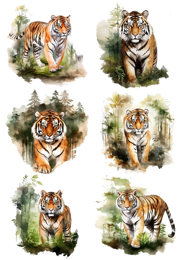 Papier ryżowy A4 Artando do decoupage - tygrysy, dzikie koty, las drzewa