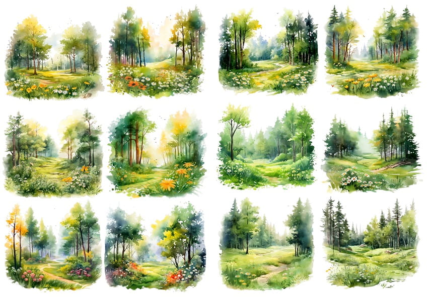 Papier ryżowy A4 Artando do decoupage - widok, pejzaż, las, drzewa, kwiaty