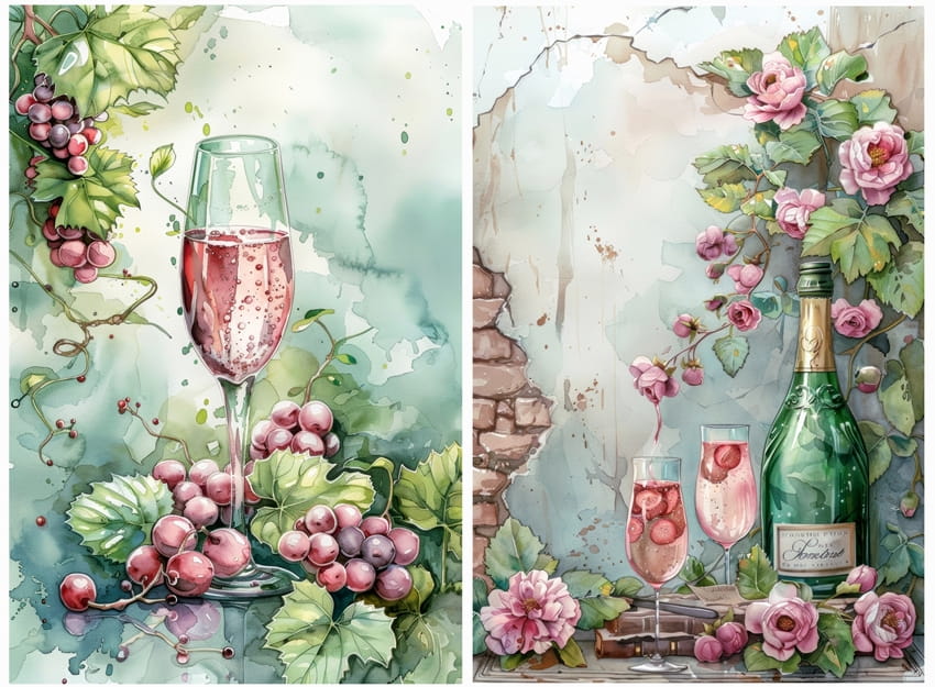 Papier ryżowy A4 Artando do decoupage - wino, winogrona, kwiaty, róże