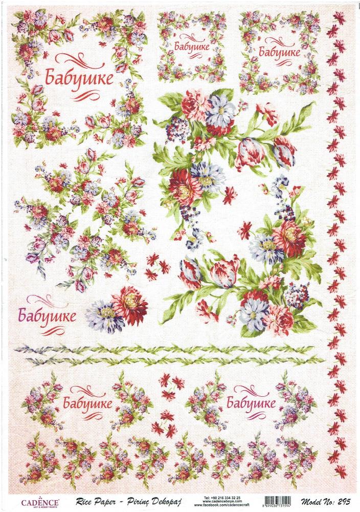 Papier ryżowy przeznaczony do techniki decoupage, bardzo dobrej jakości, bardzo cienki i wytrzymały, piękne przejrzyste barwy i wspaniałe wzory. Bardzo łatwy w użyciu. Świetny zarówno dla początkujących, jak i dla zaawansowanych, dzięki temu, że jest bardzo cienki, podobny do serwetek.