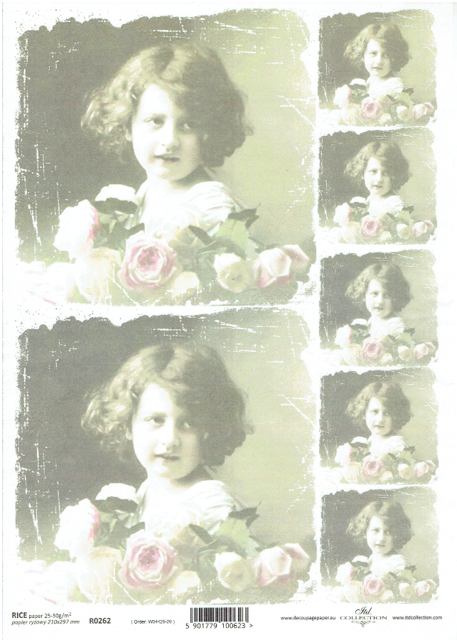 Papier ryżowy A4 ITD do decoupage - dziecko, dziewczynka, kwiaty