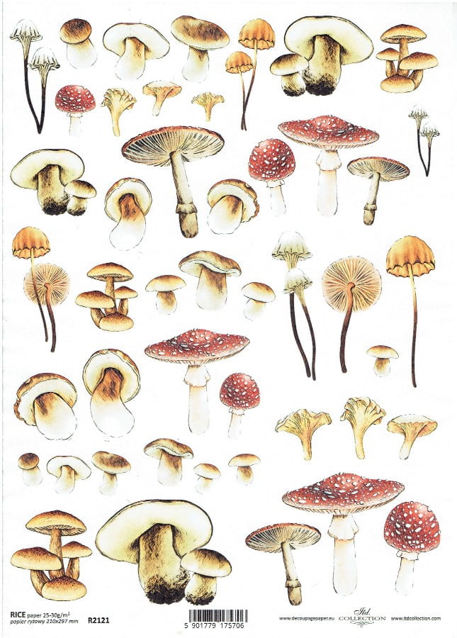 Papier ryżowy A4 ITD do decoupage - grzyby