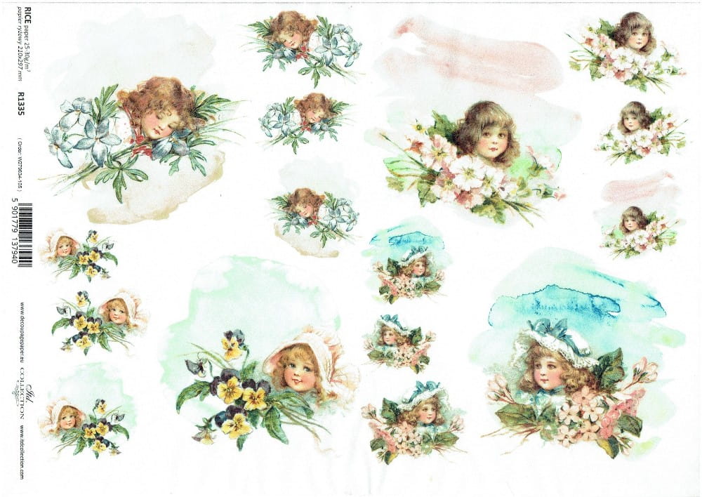 Papier ryżowy A4 ITD do decoupage - kwiaty, dzieci