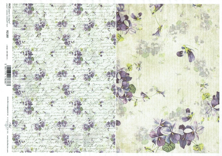 Papier ryżowy A4 ITD do decoupage - kwiaty, fiołki, napisy