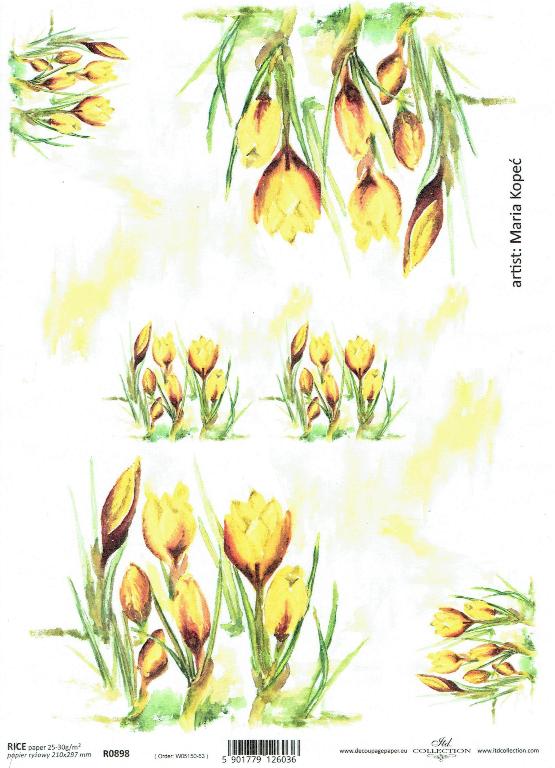 Papier ryżowy A4 ITD do decoupage - kwiaty, krokusy