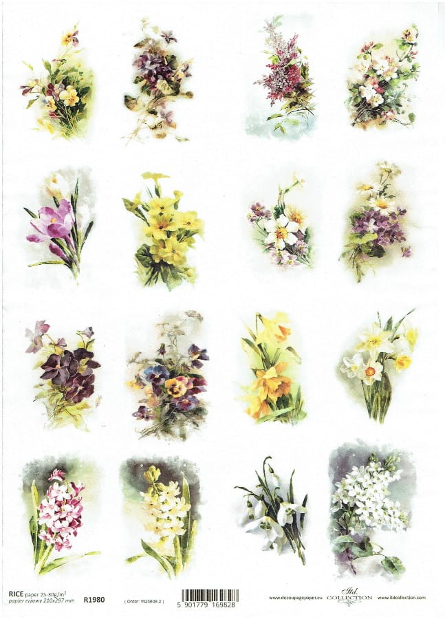 Papier ryżowy A4 ITD do decoupage - kwiaty, kwiatki