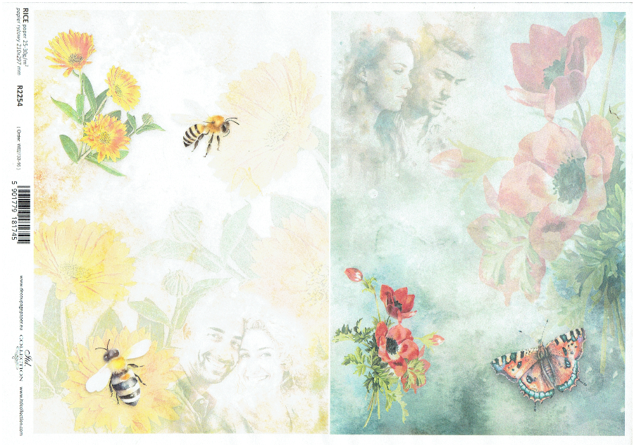Papier ryżowy A4 ITD do decoupage - kwiaty, motyle, para