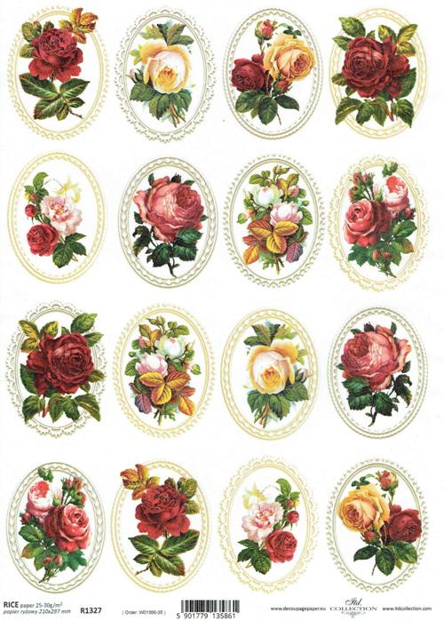 Papier ryżowy A4 ITD do decoupage - kwiaty, róże w ramkach