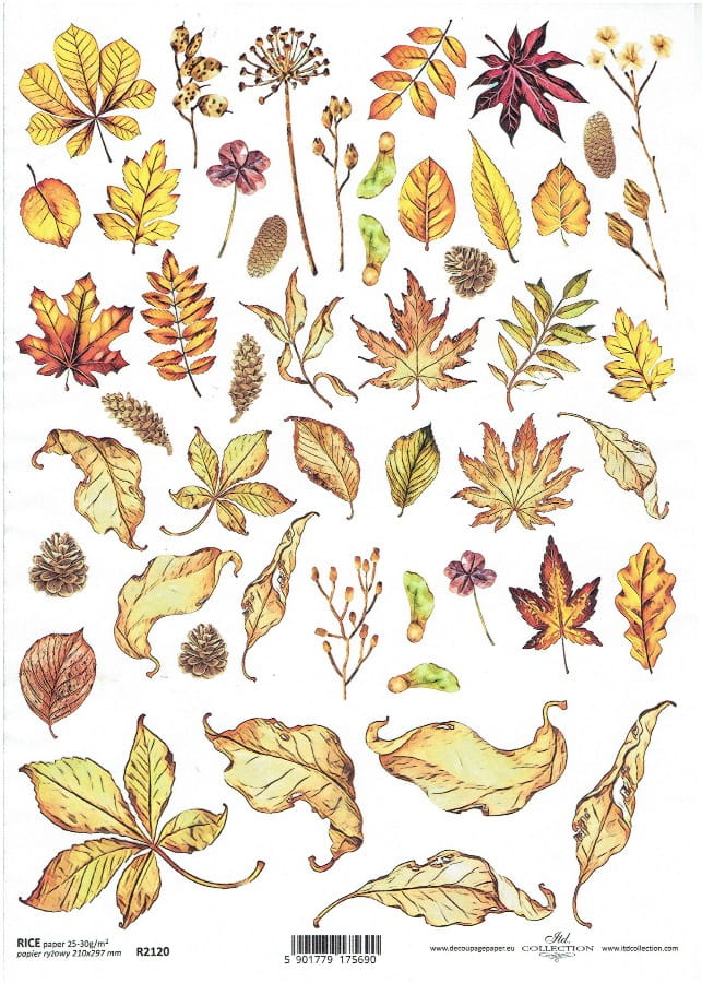 Papier ryżowy A4 ITD do decoupage - liście, listki
