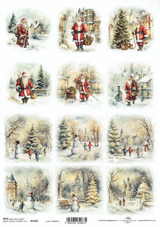 Papier ryżowy A4 ITD do decoupage - widok zimowy, pejzaż, dzieci, Mikołaj, zima