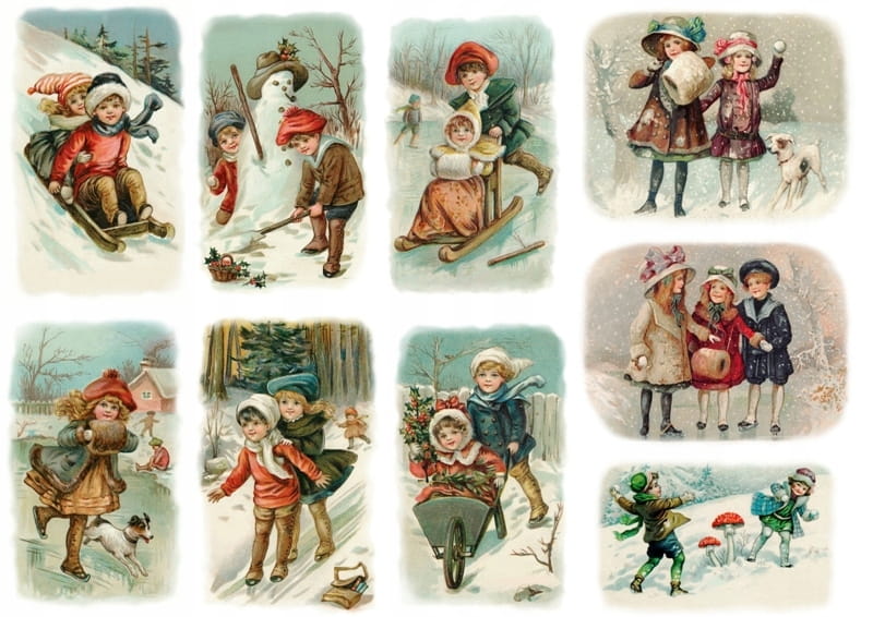 Papier ryżowy A4 do decoupage A - dzieci, zima