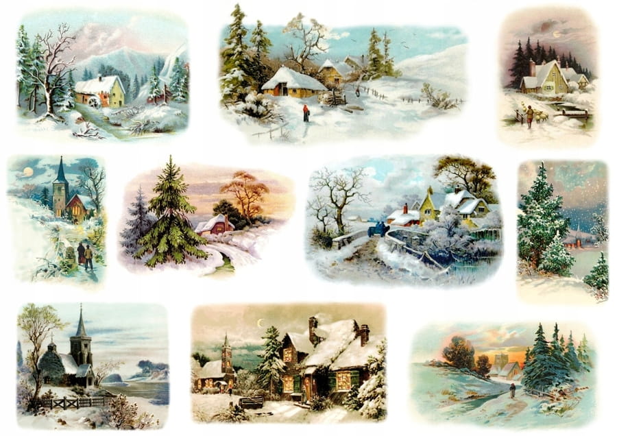 Papier ryżowy A4 do decoupage A - widok, pejzaż, zima