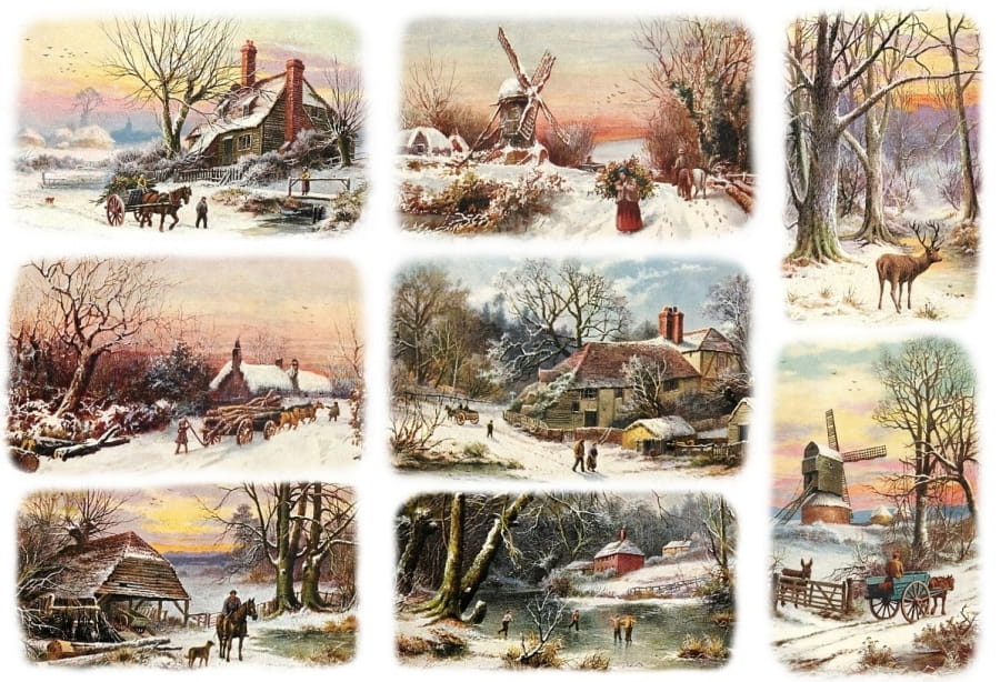 Papier ryżowy A4 do decoupage A - widok, pejzaż, zima